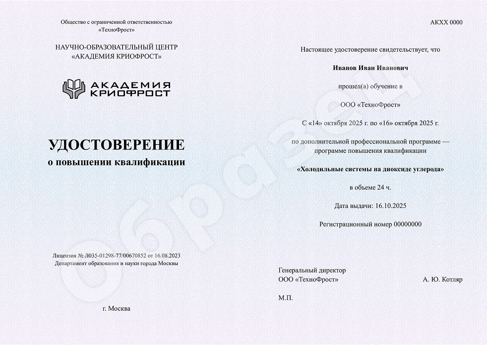 Программа повышения квалификации для инженеров, проектировщиков и технических специалистов, направленная на освоение принципов работы, особенностей проектирования и безопасной эксплуатации холодильных установок на природном хладагенте R744.